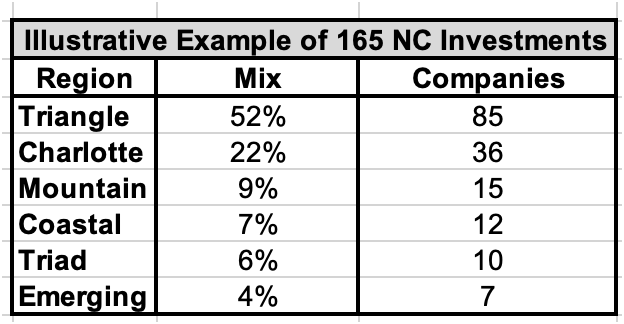 If the Triangle is underfunded for great startups, the rest-of-NC is super-underfunded. Half our mission is to help founders, this is appealing, we’re ‘needed’ more here. The other half of our mission is to deliver an outsized return for our investors, and for investors this is also appealing, less competition means better entry valuations.