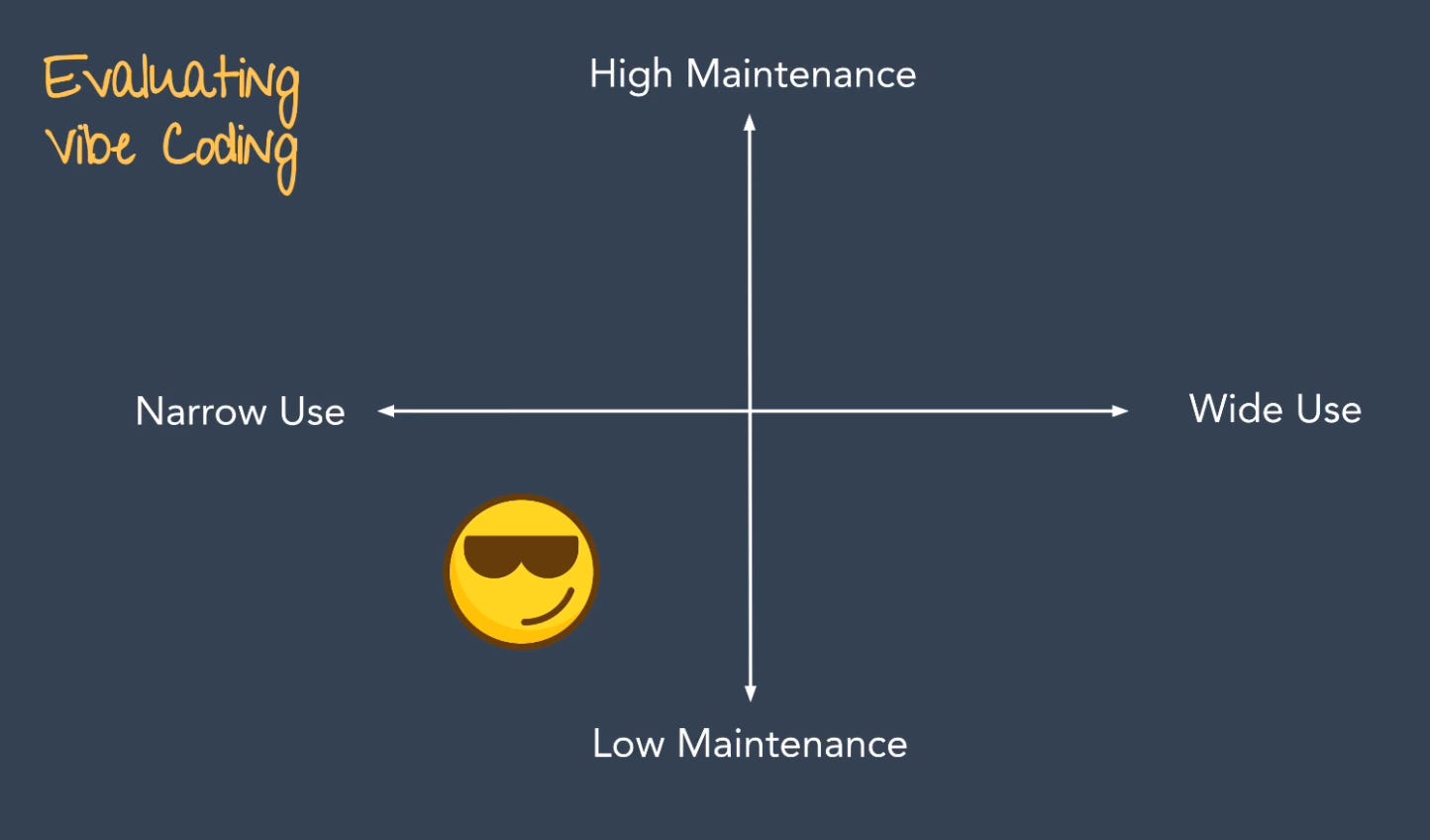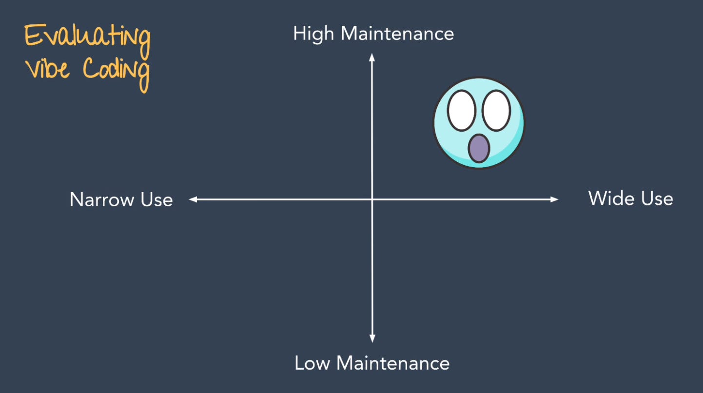 A general-purpose CRM sits in the worst quadrant: wide use case, high maintenance. In other words, don’t try to vibe code Salesforce.