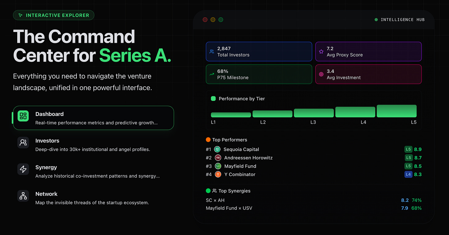Think of it as a command center for venture sourcing, mapping investors, co-investment patterns, and startup momentum across the ecosystem.