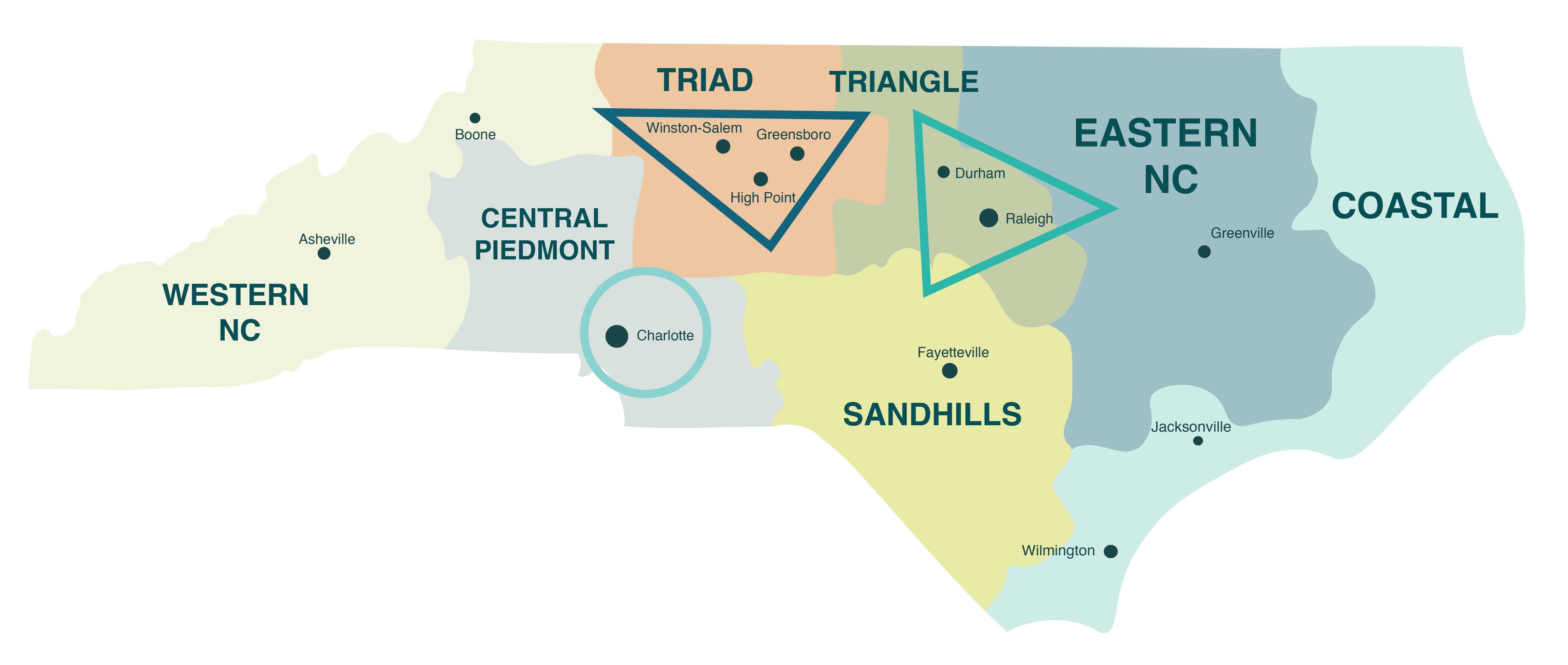 Key Cities: Greensboro, Winston-Salem, High Point, Burlington, Kernersville, Lexington, Thomasville.