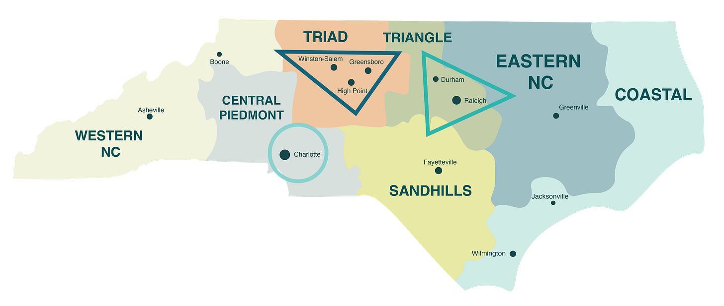 As part of the 2026 NC Region, the state of NC is sub-divided into 7 regions: