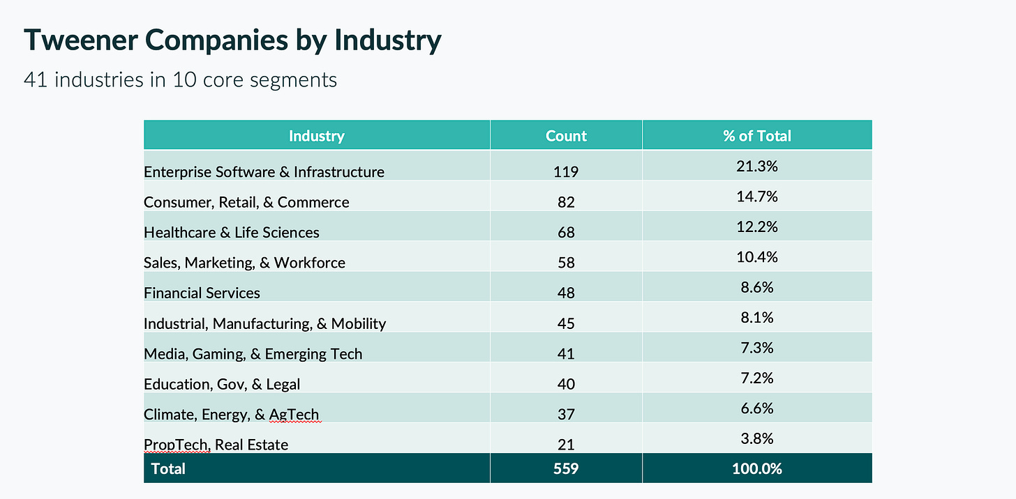 Think of Tweeners as the ‘Goldilocks’ companies: not too small and not too large. These are our future breakouts, big fund-raisers, acquisition targets and (fingers crossed) IPOs.