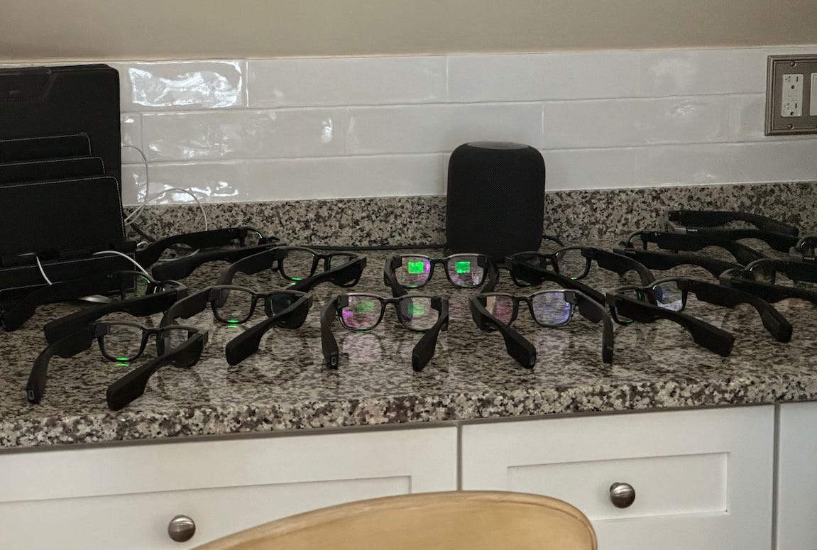 Until recently, Xander was being run out of a small third-floor apartment in Somerville, Massachusetts. Their “lab” was the back of the living room. Their test rig for new glasses was a ring of frames listening to NPR and podcasts for 12 hours at a time.