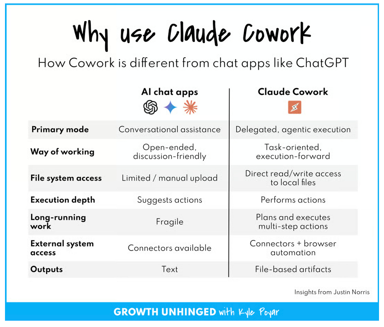 This Growth Unhinged piece (Kyle Poyar featuring Justin Norris) is basically a playbook for what the workday looks like when you stop using AI as a side tool and start using it like a Chief of Staff + execution layer.