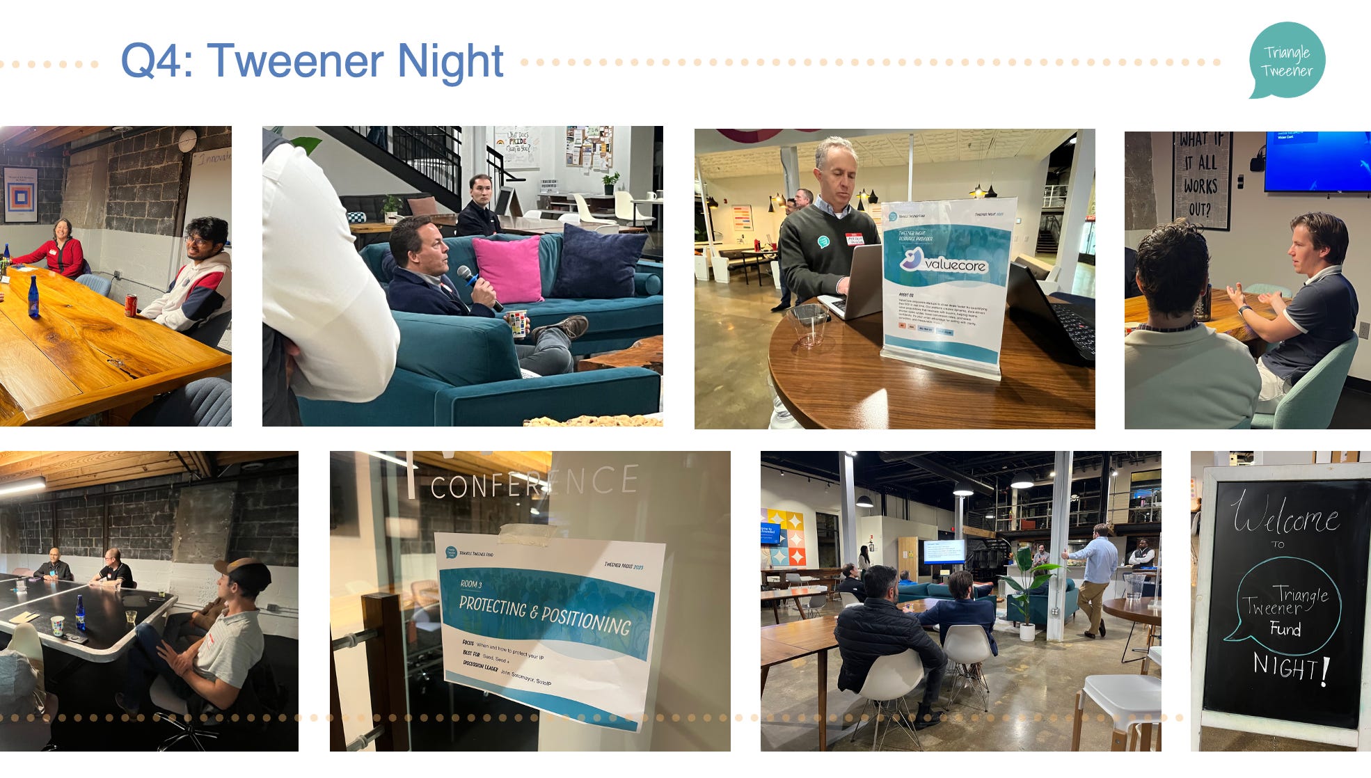 At Tweener fund, we invite our ~200 founders and ~300 LPs to quarterly events. our Q4 event was a more chill ‘hangout’ → Triangle Tweener Night at Raleigh Founded.