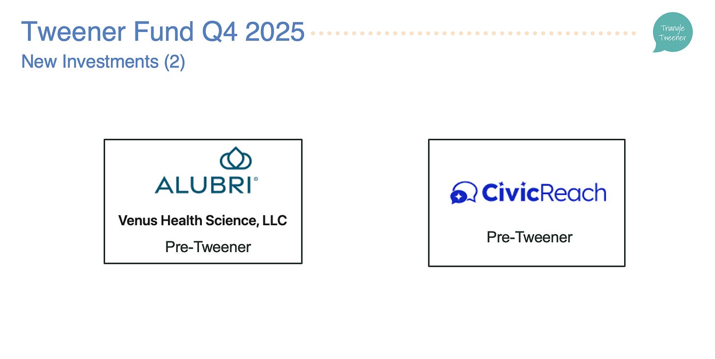 Tweener Fund Update: $575K Invested in Q4 2025, $2.6m Deployed in the year and $11.2m Over 4 Year Life of the Fund 🎉